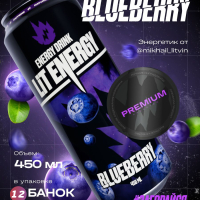 Энергетический напиток LIT ENERGY BLUEBERRY с черничным вкусом / 12 шт по 450 мл