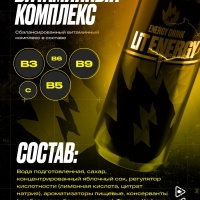 Вода подготовленная, сахар, концентрированный яблочный сок, лимонная кислота, пищевые ароматизаторы, таурин, кофеин, витаминный комплекс